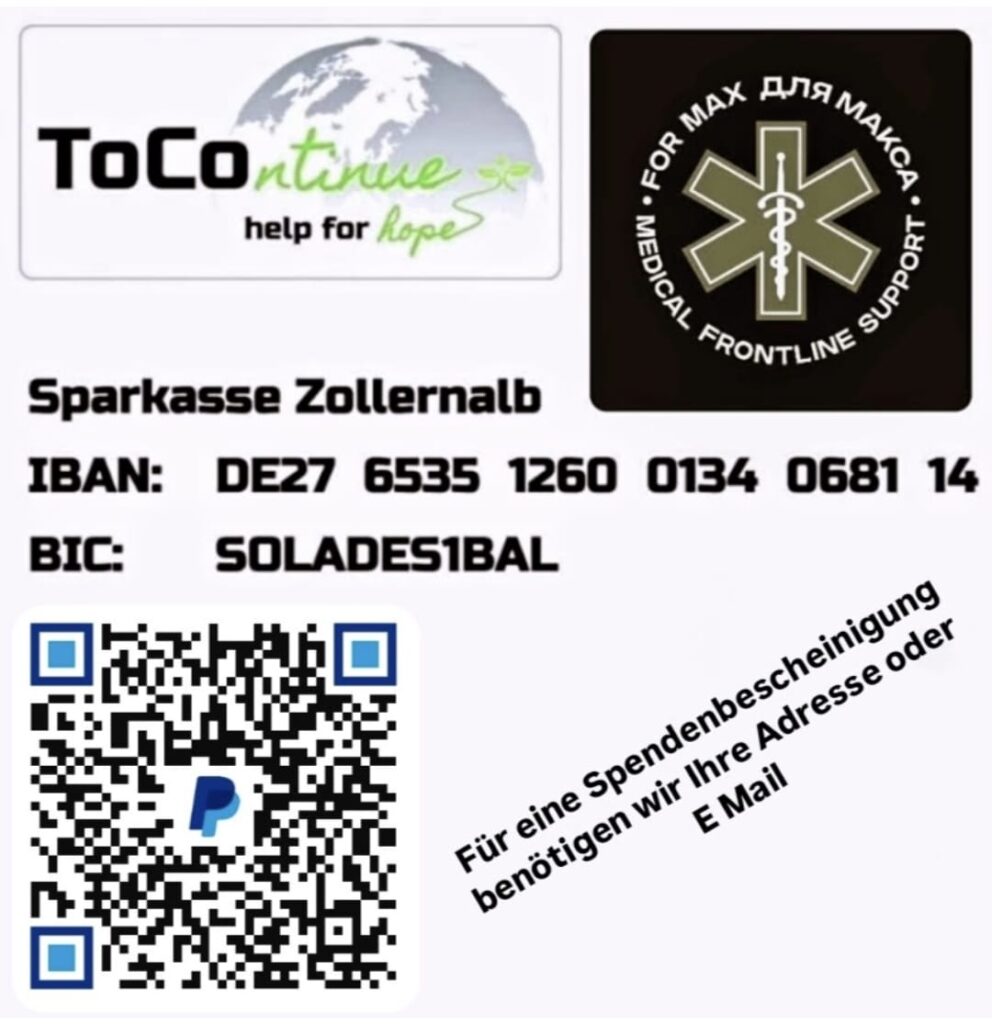 Under the name “for Max”, our group of doctors provides Role 1/prehospital services along the frontlines of Ukraine. We deliver life-saving medical equipment and offer professional expertise in training and preparedness, based on our own experience. In the name of Max and the countless colleagues who lost their lives while providing care, we do our part to improve and adapt current standards of care under fire)